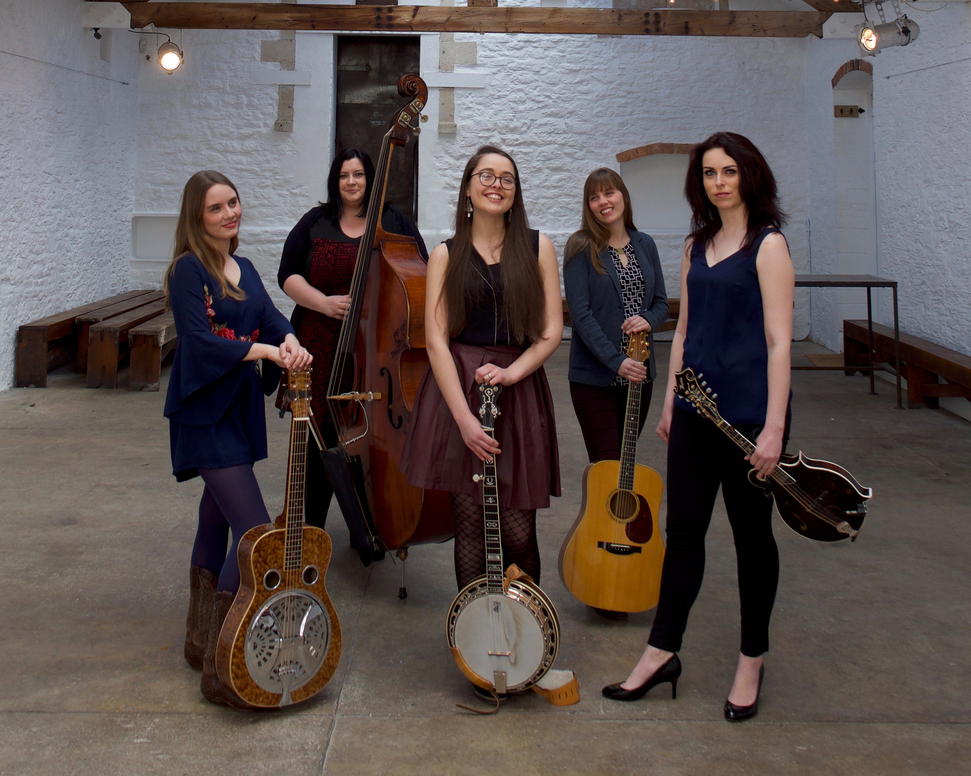 The IBMA Momentum Award-nominated band have been tearing up the UK bluegrass and folk scene since their inception just over two years ago. Their all star lineup and exciting live performances have sent them racing skywards at an astounding pace right from the start, with Leanne Thorose’s powerhouse vocals and driving mandolin; Tabitha Agnew’s sweet voice and virtuosic banjo playing; Eleanor Wilkie’s rock solid bass grooves; Laura Carrivick’s flair, being equally adept on both fiddle and dobro; and twin sister Charlotte’s agility on the guitar, with both sisters filling in the vocal harmonies.