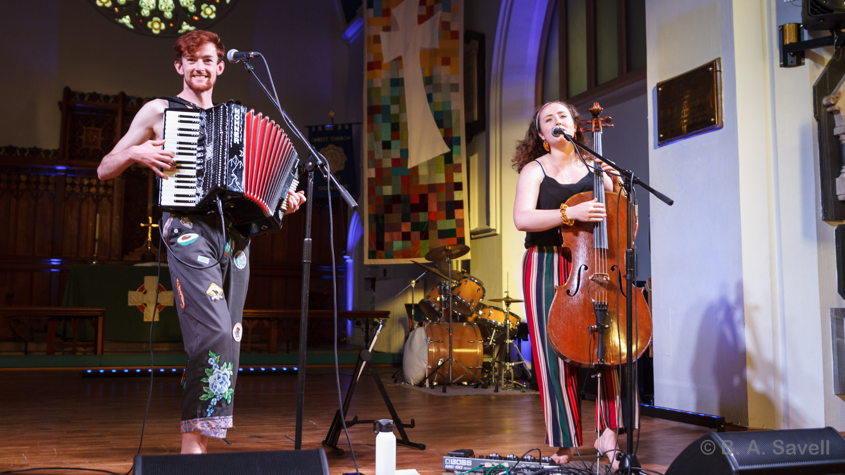 Made up of Bonnie Schwarz (cello, vocals) and Pete Shaw (accordion, backing vocals), they are the perfect foil to the headline duo, with their thoughtful alt-indie-folk vibes and energy charming the audience from the first note.