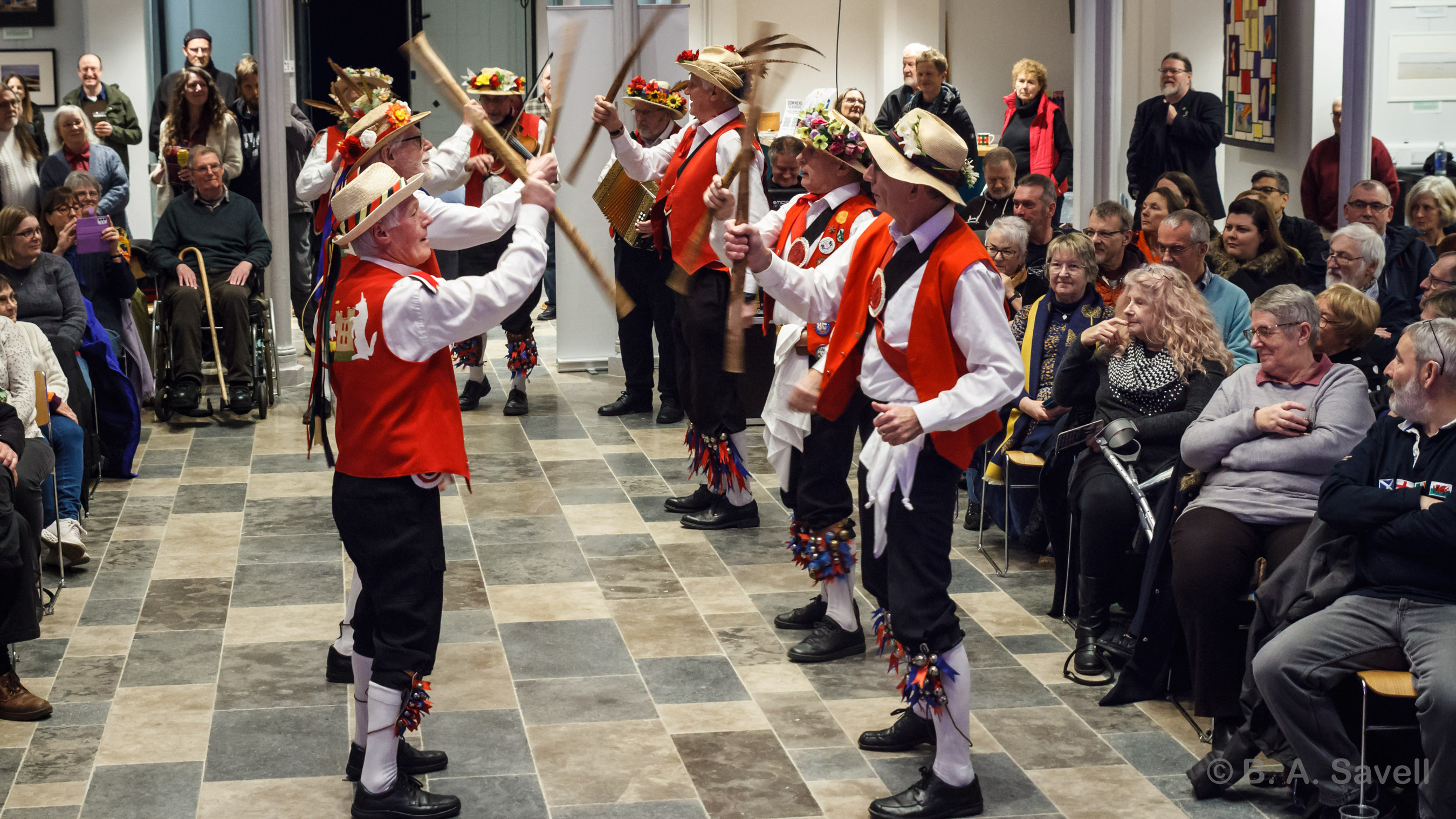 Cliff was a member of BRISTOL MORRIS MEN, and so it was appropriate that they got the entertainment underway with six dances to start the evening. When CHRIST CHURCH DOWNEND was refurbished a few years ago, they were keen to see the building used by more community groups, but surely even they couldn't have imagined that it would include this! The team really set the tone of the evening, surrounded by smiling faces and tapping feet as they worked their way through dances with hankies and clashing sticks. Superb.