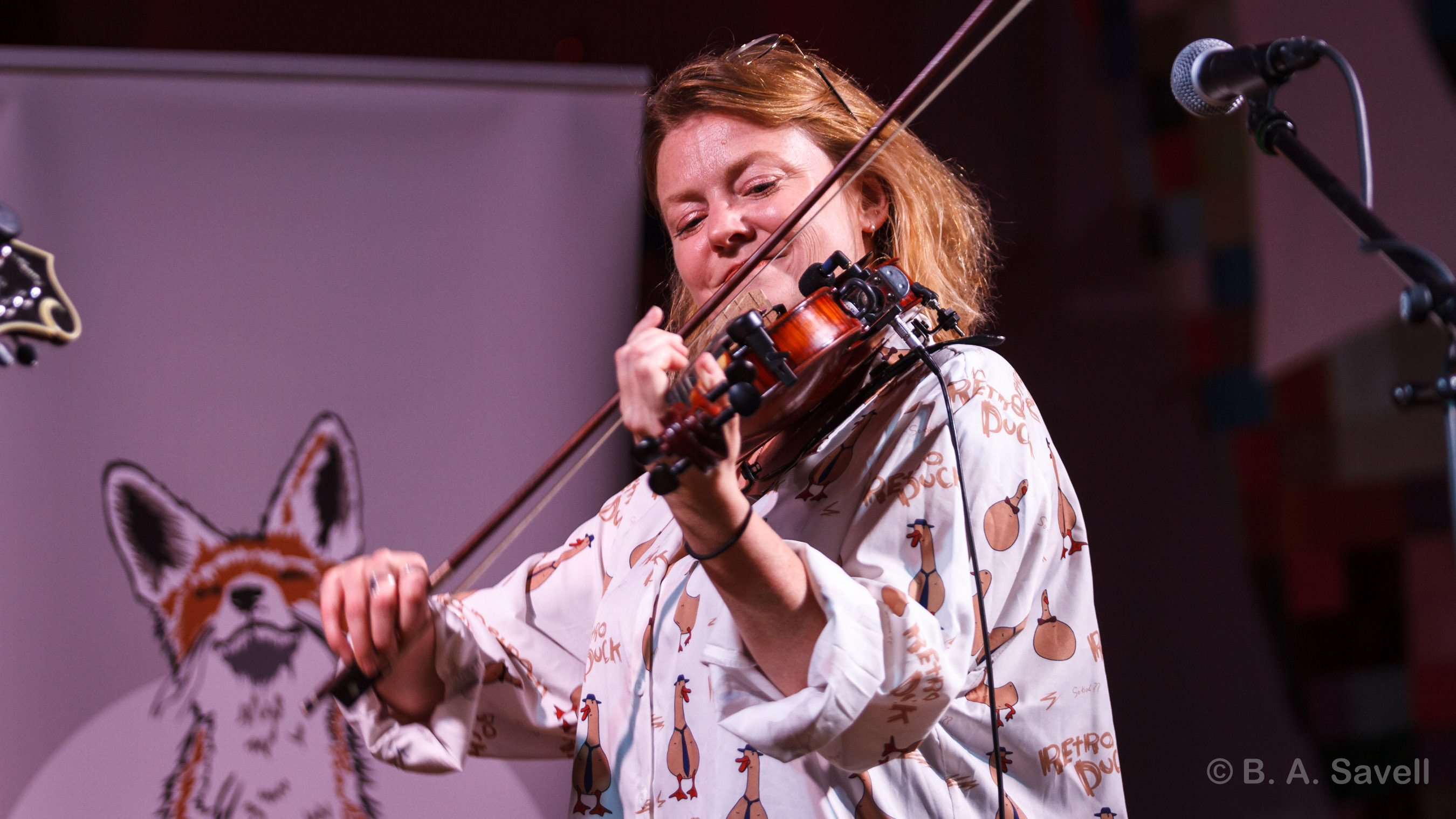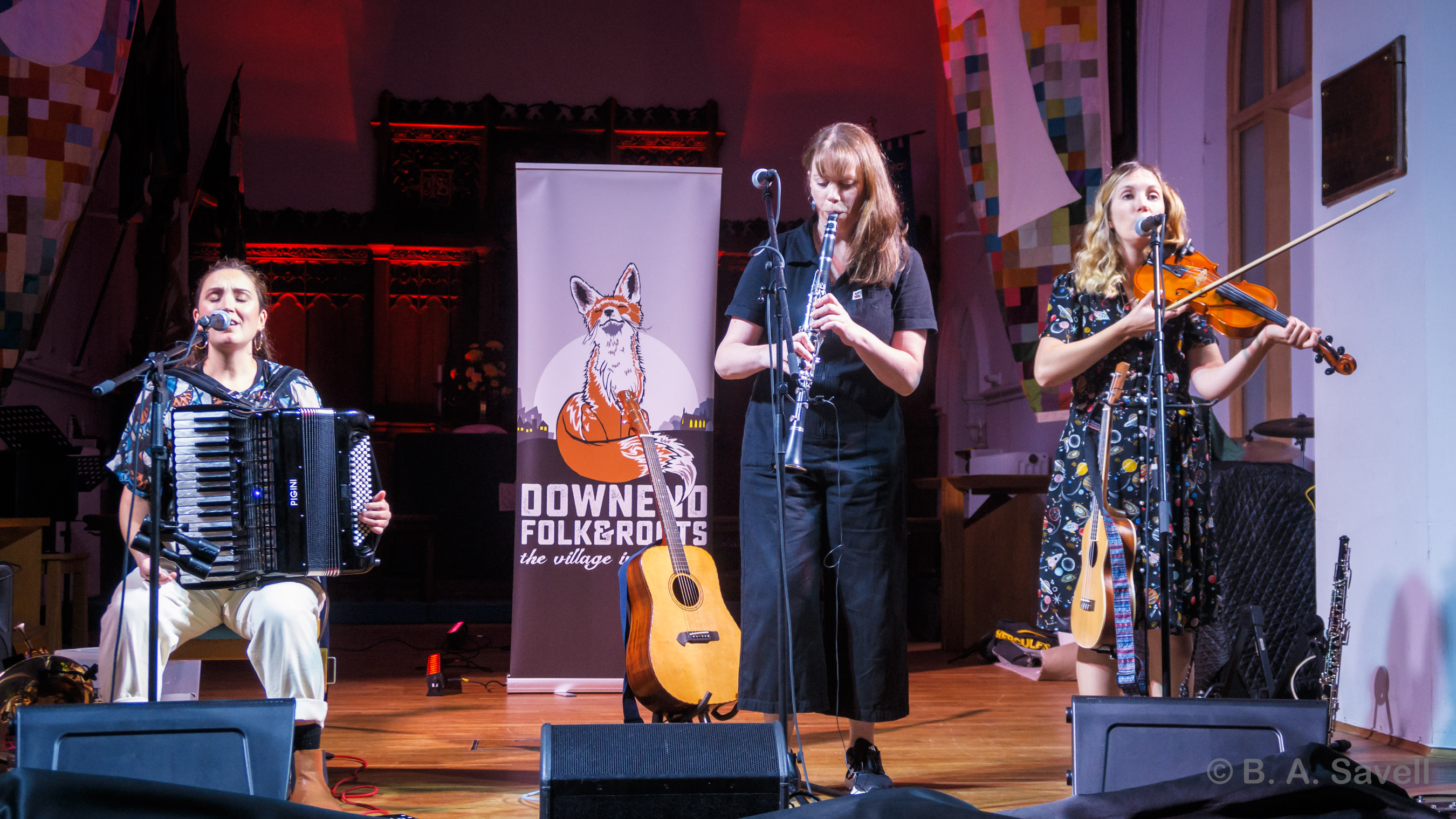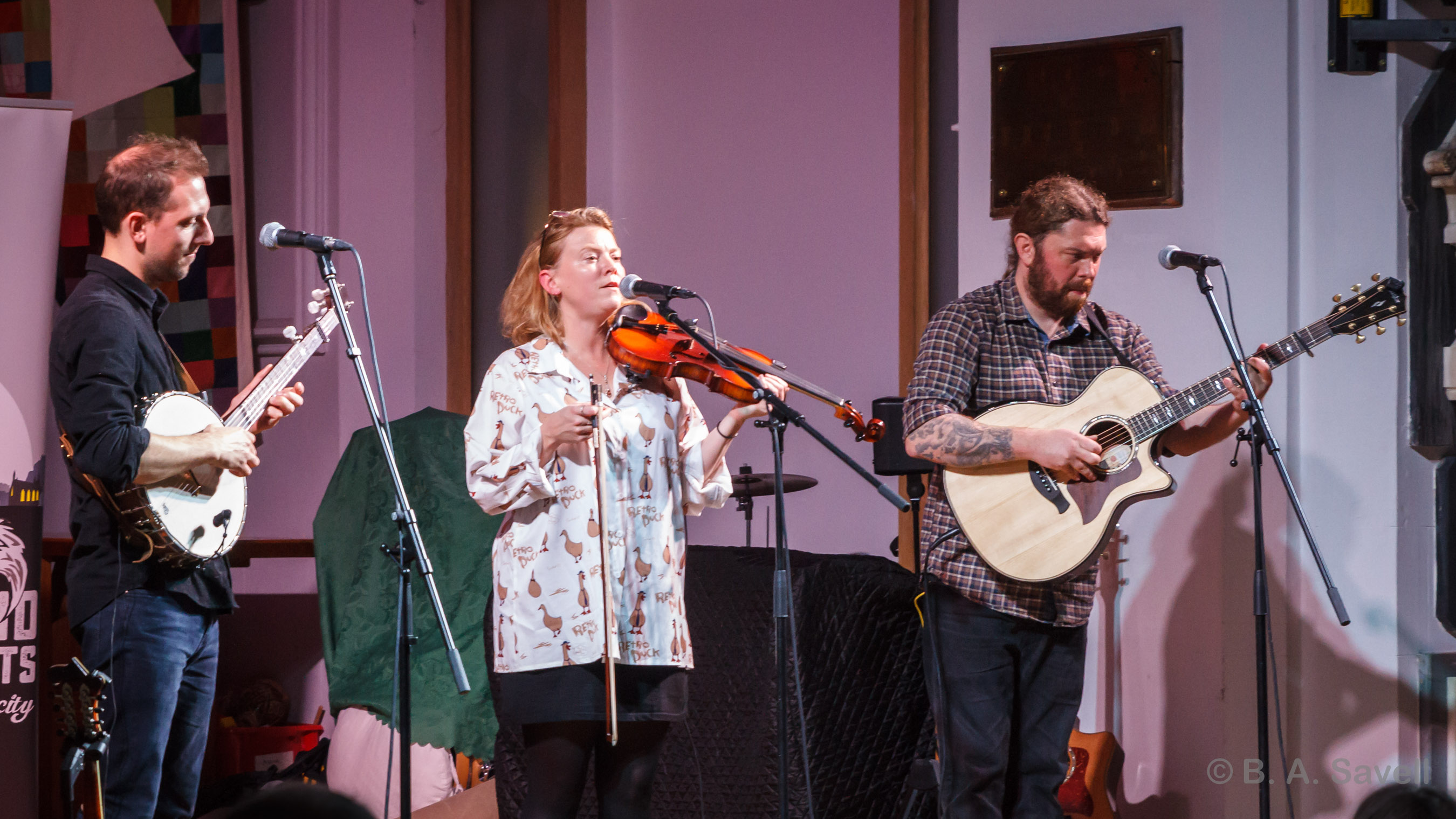 It's not often that the Downend audience gets up to have a dance (they much prefer a hearty sing) but, tonight, there’s some spirited, untethered whirling. Bolton Lodge is a walking tune that spins with its arms wide, bouncing on the balls of its feet. It has a childlike fizz that sends people up and out of their seats. The Stanford, a tune written for a pub, does it too. Mandolin and fiddle zooming around, pausing, dipping, then joining the steady thrum of the guitar.