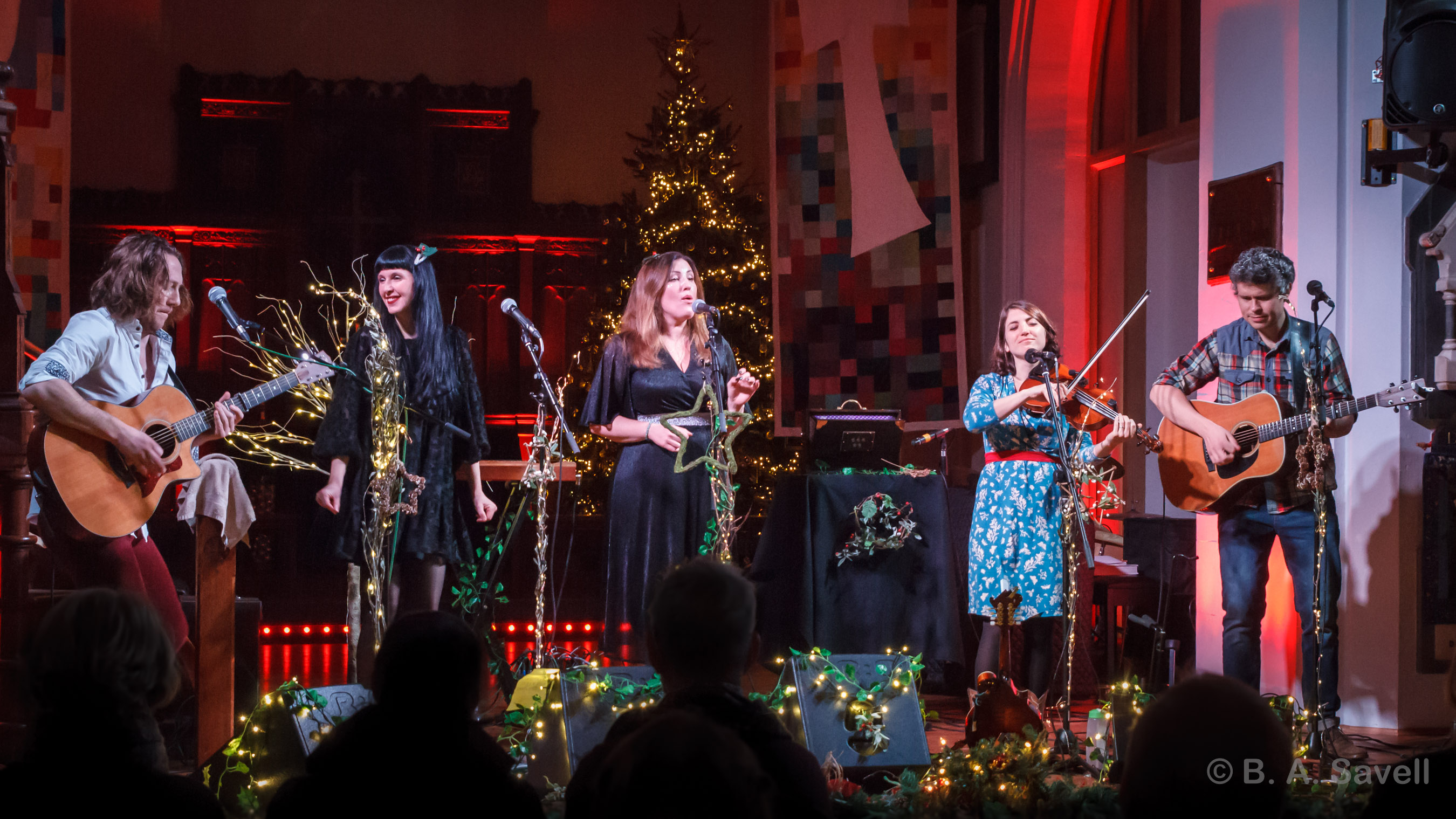 It was pretty clear where the evening was headed after the first song - a harmony-drenched rendition of Ding Dong Merrily On High that featured the fantastic fiddle playing of Katriona and the twin guitars of Ben and Jamie. This wasn’t the only traditional carol that we were treated to either. As the evening progressed so the church rang to the strains of I Saw Three Ships, In The Bleak Midwinter and a particularly spooky and off-kilter God Rest Ye Merry Gentlemen. There was something of the theme tune to weird Christmas-y TV show The Box Of Delights about some of these. Particularly when Hannah dusted down her dulcimer and it wound itself around Ben’s dobro. The perfect combination of folk and Christmas.