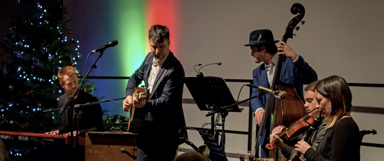 Then there was the main event. Part two. His "mini Upcetera band" playing virtually the whole of Moray's most recent album. To say that it was extraordinary is doing it a huge disservice. From the first moments of Fair Margaret and Sweet William it was clear that here is a work of such loveliness, such undeniable beauty that the twinkling lights of Christmas could be safely forgotten. The band consists of keyboards, double bass, guitar, violin and a clarinet; hardly your average folk band but a slimmed down version of the jaw dropping bunch that debuted Upcetera at the Tobacco Factory last year. Each musician add magical layers but it’s Tom Moore's violin and Hannah McCabe’s clarinet that add depth and detail. The clarinet, in particular, lends a baroque air that's part 60s psych, part rococo salon.