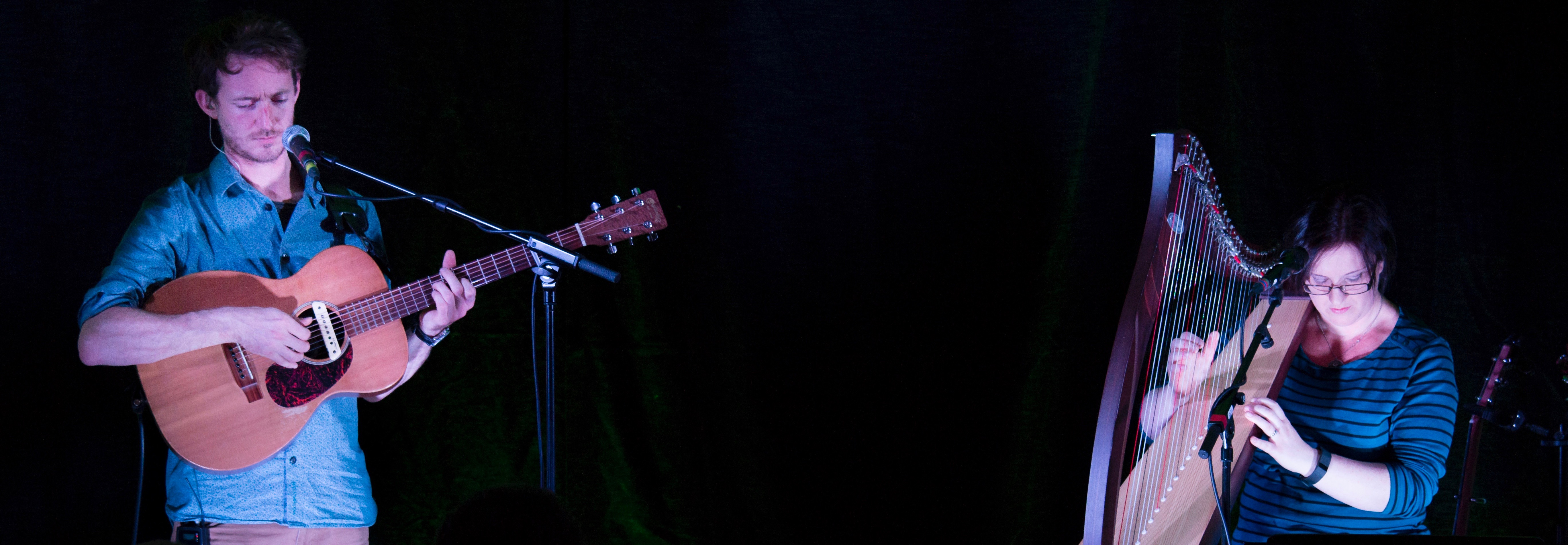The duo perform live with a staggering array of ever-changing instruments and equipment: a 27-string harp, 4 different guitars, a double bass, an array of traditional whistles, an Indian shruti box, two loop pedals, a stomp box and anything else they've decided to bring with them to keep their sound engineer on his toes. It’s Ange’s innovative and spellbinding use of loop pedals to build layers of vocal harmony live from the stage that have gained her the most attention as a live performer - the dexterity of timing and skill required to harmonise with herself is almost as impressive as her ability to seemingly never perform the same set list twice.