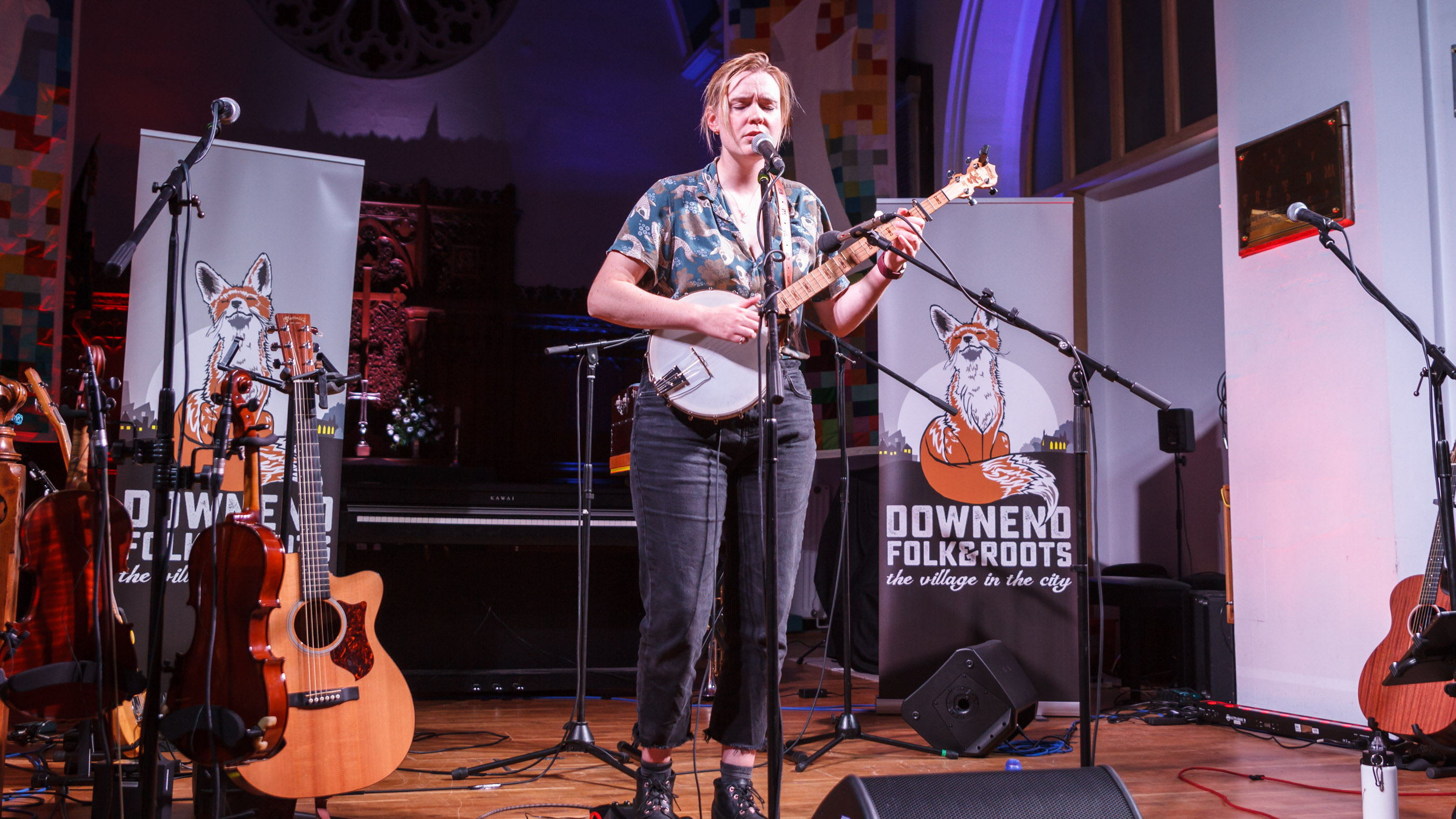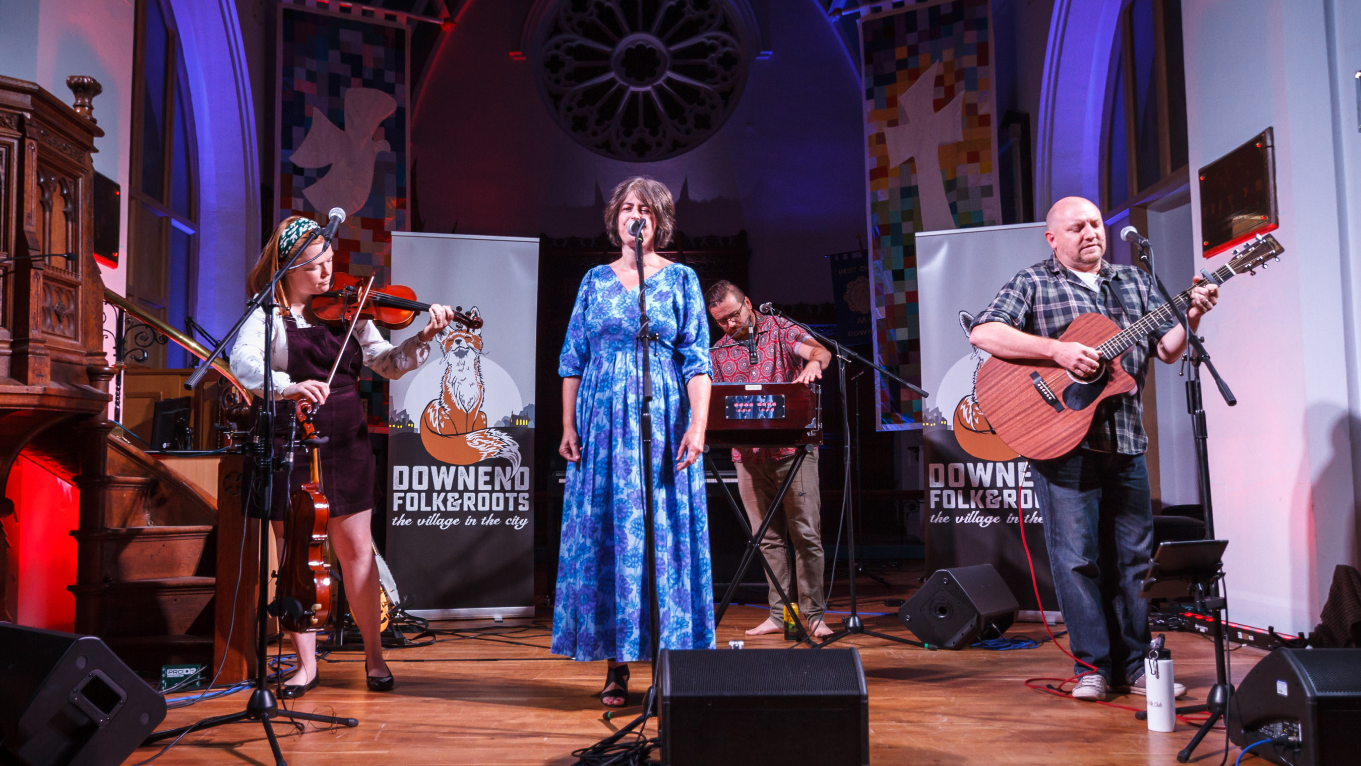 If Downend Folk & Roots has a house band then Road Not Taken is probably it. They played their very earliest gigs here, have launched albums here and founder Ant Miles plays guitar and sometimes sings with them too. They are welcomed as hometown heroes, playing to a home crowd, shooting in front of an open goal.